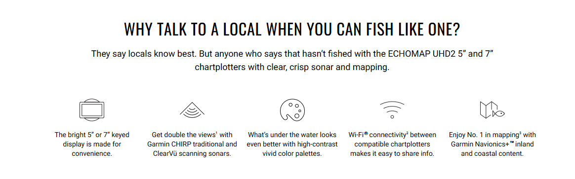 Quick view Details Garmin | sku: GARM0100268901 Garmin Echomap UHD2 94SV GT20 MSRP: Now: $1,399.99 Sold-Out: Enter email to be notified when new stock arrives Quick view Details Garmin | sku: GARM0100259551 Garmin Echomap UHD2 74CV GT20 MSRP: Now: $699.99 Sold-Out: Enter email to be notified when new stock arrives Quick view Details Garmin | sku: GARM0100255000 Garmin Striker Vivid 4CV GT20-TN MSRP: Now: $199.99 Sold-Out: Enter email to be notified when new stock arrives Quick view Details Garmin | sku: GARM0100255100 Garmin Striker Vivid 5CV GT20-TM MSRP: Now: $349.99 Sold-Out: Enter email to be notified when new stock arrives Quick view Details Garmin | sku: GARM0100155000 Garmin Striker 4 MSRP: Now: $159.99 Sold-Out: Enter email to be notified when new stock arrives